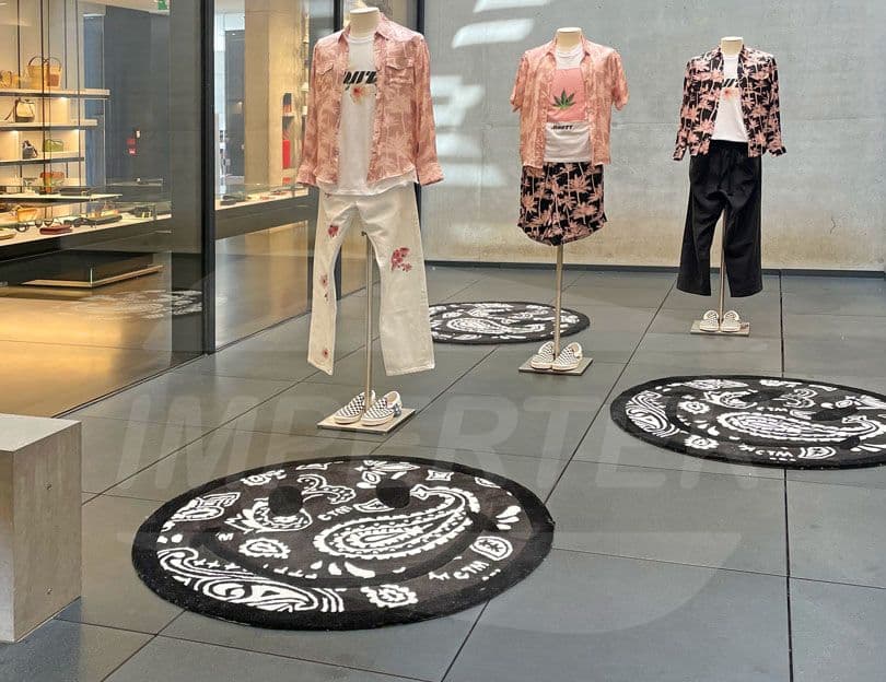 L’edificio principale, dedicato alla boutique, si sviluppa su tre piani fuori terra e un piano interrato, ripartiti tra spazi di vendita, per un totale di 2500 metri quadri, e un piano privato. Il volume è riempito completamente dall’edificio cubico, i cui giochi tra i pieni, dati delle superfici monomateriche in pietra basaltina, e i vuoti, ricavati dalle spaziose terrazze vetrate, gli conferiscono un aspetto finito e neutro all’esterno e luminoso e trasparente all’interno, consentendogli di emergere silenziosamente nel contesto cittadino.