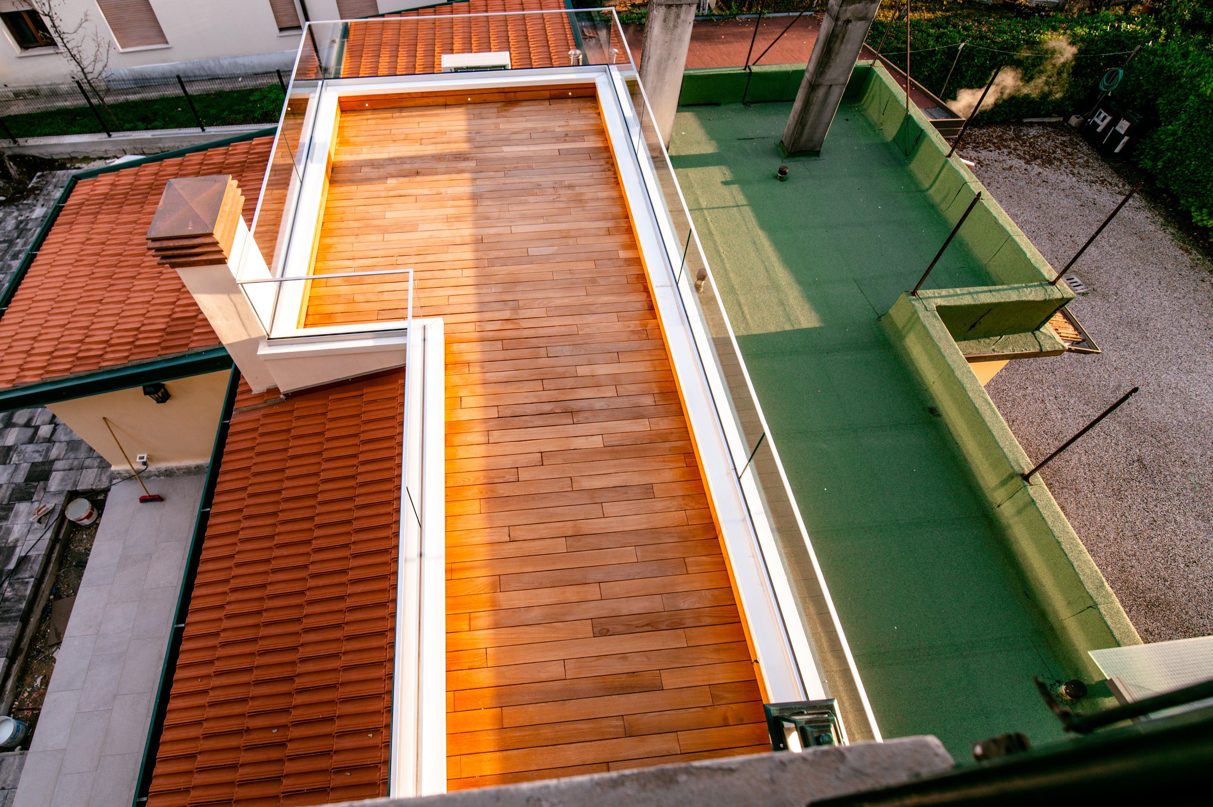 A livello prestazionale, la pavimentazione sopraelevata trasforma il terrazzo in uno spazio tecnico manutenibile, garantendo al contempo un’estetica raffinata e una gestione funzionale delle acque.