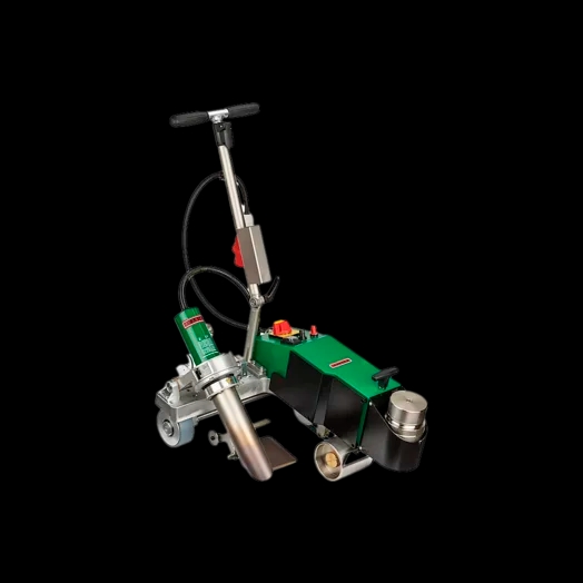 Saldatrice automatica senza fiamma per installare membrane bituminose, garantendo saldature di alta qualità e affidabilità con un processo sicuro e veloce.
